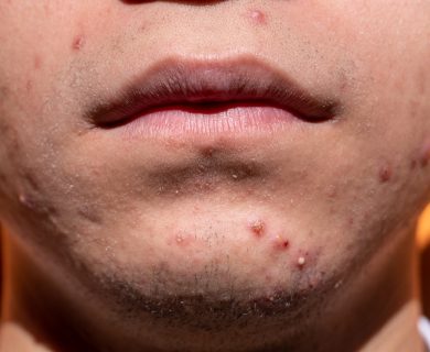 Acne (otherwise called acne vulgaris) is a skin condition in which blockage of the glands near hair follicles occur leading to spots.